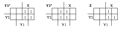 Giving us the final equations: Y1' = X, Y2' = Y1, and Z = (X)(Y1) + (X)(Y2).